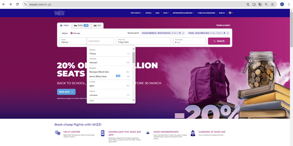 So we opened the Wizz Air booking site and looked where Wizz Air flies from Vienna.