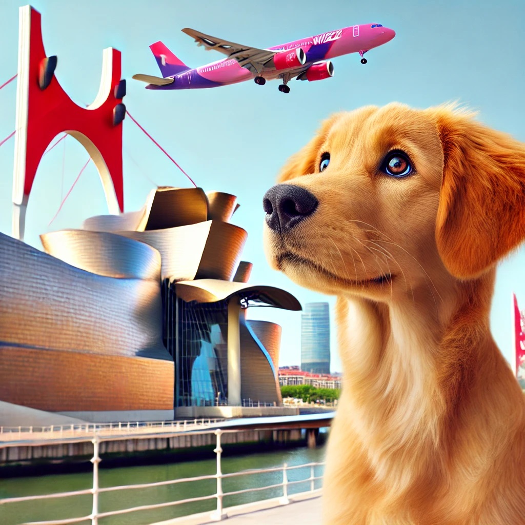 Our blog companion dog Fina (you know her from last week and no, we do not leave her alone at the airport!) in the picture is watching the Guggenheim Museum and the “Salbe Zubia” bridge, which we will see in three days in real.